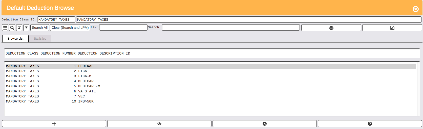 Position Tracking* > Setup> Deductions > Deduction Classes