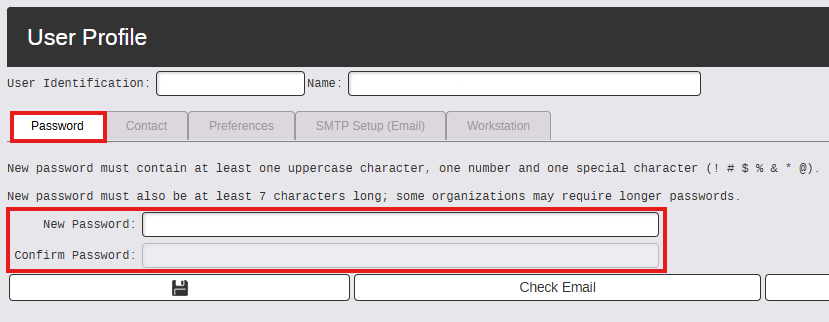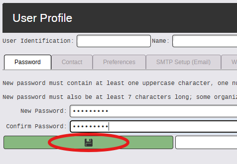 - On the Password Tab ~ Enter the New Password and then confirm the New Password (screenshot below).