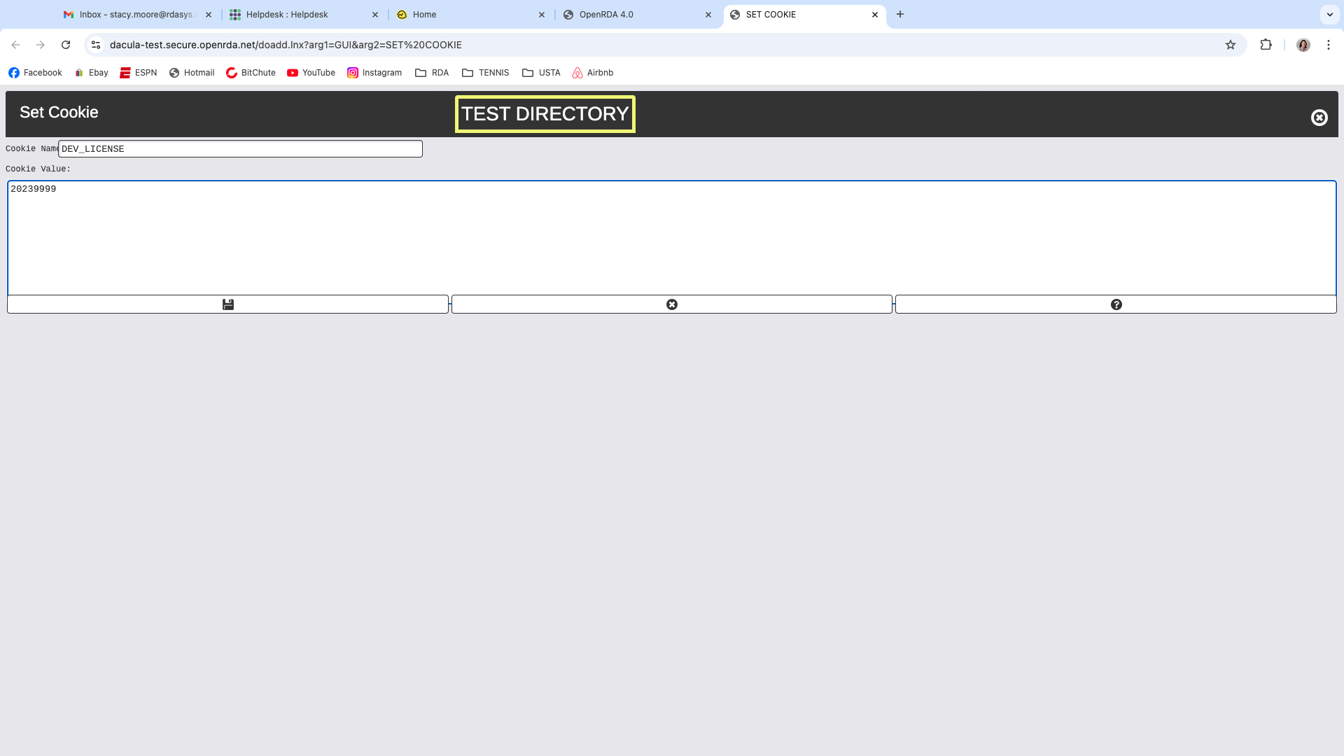 | Cookie Value | — | — | ♦ | Enter the Access Code of the Day (Contact RDA Support for the code) |