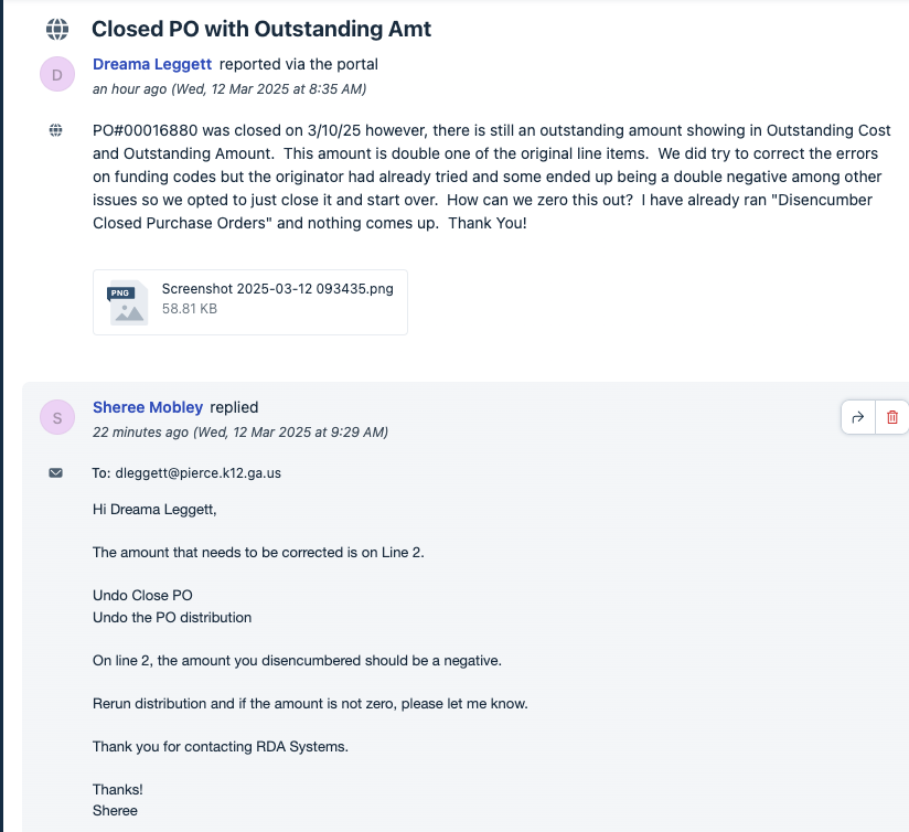 - Procurement → Purchase Orders → Close Tab → Disencumber Closed POs