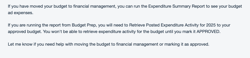 ISSUE: HOW DO I PRINT MY FY2025 BUDGET AND TO SHOW EXPENDITURES TO DATE?