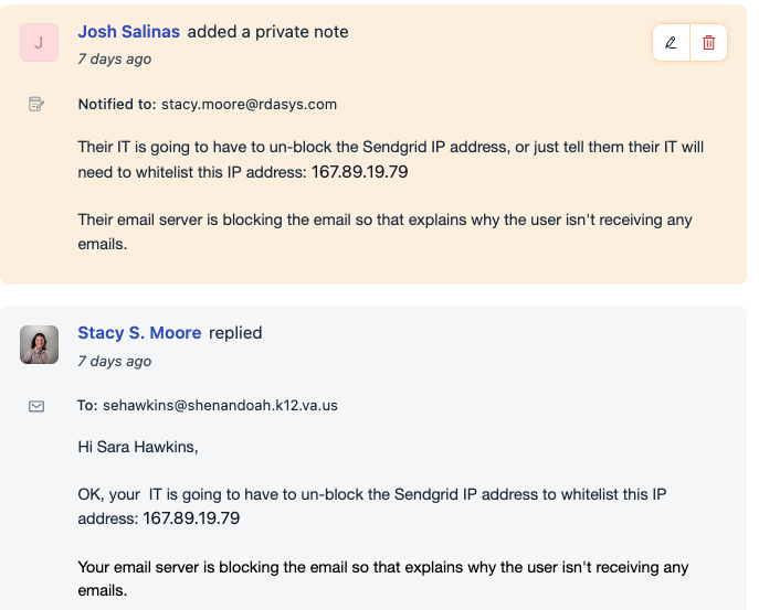 ISSUE: PO Approvers are not getting emails that PO's are ready to approve. See Ticket #123043. This is a lengthy ticket that Stacy/Josh worked on together. Here is resolution once Josh traced one of the emails and noticed that it was being bounced back from the customer's server.