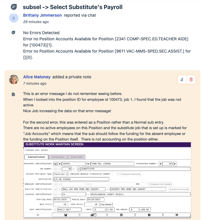 ISSUE: Select Substitutes into payroll - error message