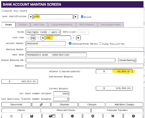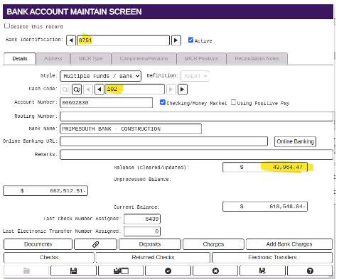 - check register/update Bank Recon