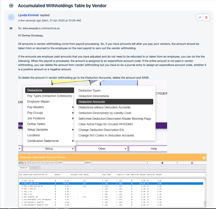 ISSUE: how to clear the amounts showing under the accumulated withholdings table by vendor in Payroll Vendor Withholding Module