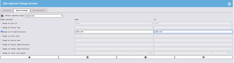 Range as necessary. Click Select (Process wheel) to bring up the Approve Browse screen.