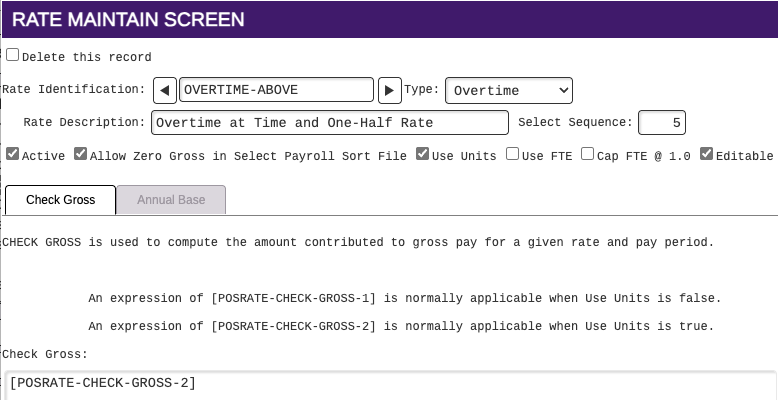 If overtime Rate Masters that pay time and one half, do not include "ABOVE" in the Rate ID, a Change Rate ID process will need to be run to change the Rate ID to include "ABOVE". This does not include OVERTIME-BASE which is paid on base rate.