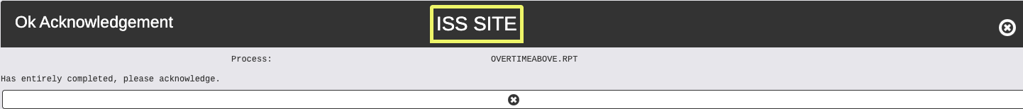 Once process is complete an OK acknowledgement will appear. Click on x at bottom of screen to cancel.