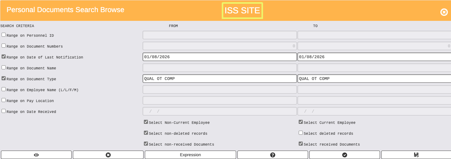 Boxes at bottom should include Non-Current and Current Employees, non-deleted records and non-recieved and received documents.