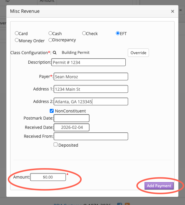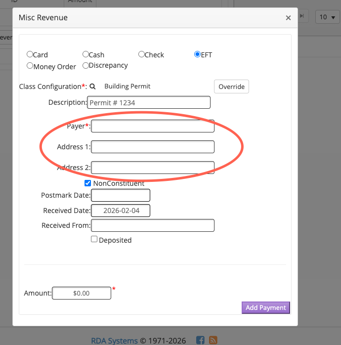 Check the NonConstituent box True, then enter the Payer info. If this Payer exists already, then leave the NonConstituent box False (unchecked) and you can search on the Payer and select the desired payer.
