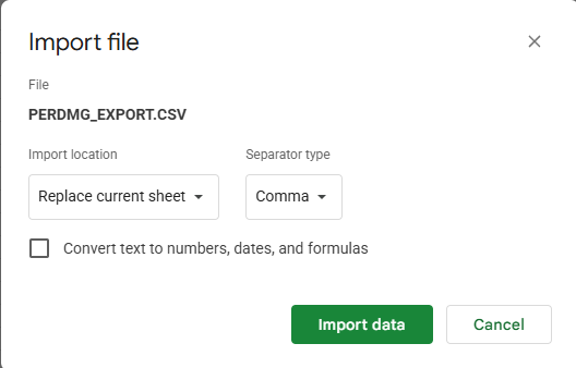 - Change the Direction to "Import to Datafile" by clicking on the dropdown arrow